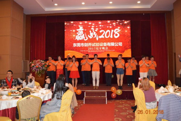2018年元月26日,劍喬試驗(yàn)設(shè)備于塘廈匯華酒店成功舉辦了2017年尾牙晚會(huì),會(huì)上高朋滿座,劍喬總經(jīng)理在會(huì)上發(fā)表致辭,表達(dá)了對(duì)各位合作伙伴一年以來大力支持的感謝,更是總結(jié)了2017年劍喬公司一年里的收獲及成長(zhǎng),并給優(yōu)秀員工及突出貢獻(xiàn)的人員給予表彰。再對(duì)劍喬2018年定下了發(fā)展目標(biāo)及期許,晚會(huì)在一片歡樂祥和中進(jìn)行。