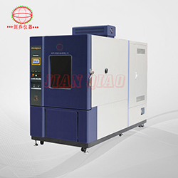 高低溫試驗箱的最高溫度一般是到150℃,最低溫度一般是到-70℃,主要是通過鎳鉻合金電加熱產(chǎn)生高溫,如果試驗箱不升溫時,應先將機器總電源關掉,檢查加熱斷路器是否有跳閘,如果有則合上,如沒有,則繼續(xù)往下查,首先用萬用表的電阻檔,測量固態(tài)繼電器的輸出端(2腳)到N線之間是否有約20歐的電阻(視不同的機型稍有變化),如果沒有,則說明加熱絲開路了,重點檢查加熱絲是否損壞;如果加熱絲沒有損壞,則打開配電箱側蓋將機器運轉并處于升溫狀態(tài),觀察固態(tài)繼電器上的導通指示燈是否點亮,如果有點亮,則用萬用表的電壓檔,測量固態(tài)繼電器的輸出端(1腳)對N線是否有220V電壓,如果沒有,再往上查接觸器,如果有,再測量固態(tài)繼電器的輸出端(2腳)對N線是否有220V電壓,如果沒有,則說明固態(tài)繼電器內部開路損壞,須更換。