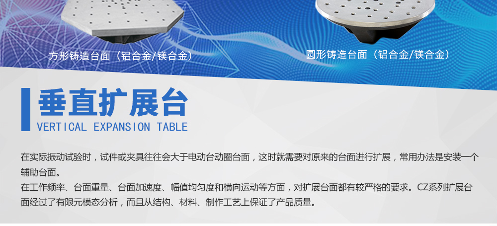 產(chǎn)品型號(hào):CZ0303 品牌:劍 喬 用途:供應(yīng)眾多型號(hào)的標(biāo)準(zhǔn)化垂直水平擴(kuò)展臺(tái),而且支持客戶的特殊定制,從而滿足客戶對(duì)振動(dòng)臺(tái)性能擴(kuò)展的需求。在實(shí)際振動(dòng)試驗(yàn)時(shí),試件或夾具往往會(huì)大于電動(dòng)臺(tái)動(dòng)圈臺(tái)面,這時(shí)就需要對(duì)咨詢(xún)熱線:13829135130